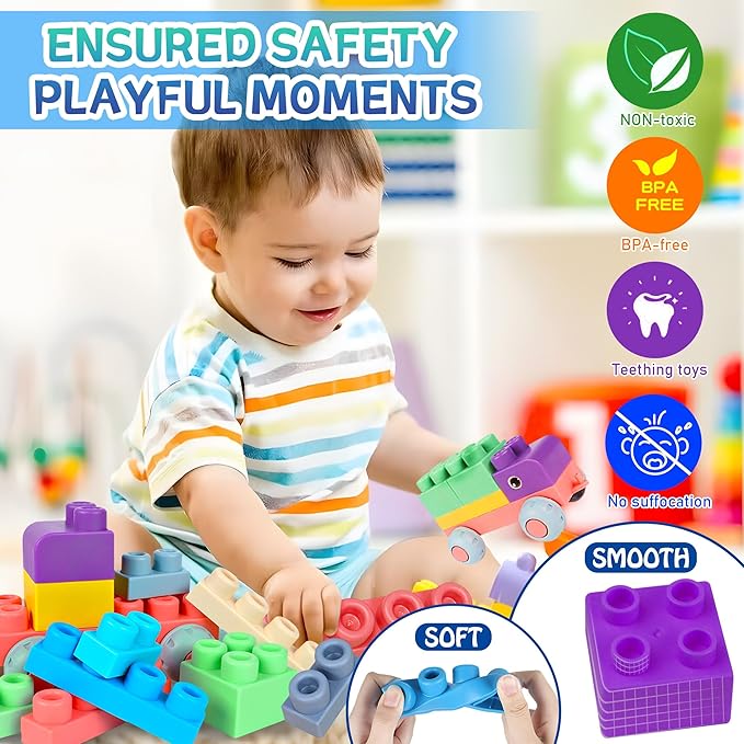 • Easy to Clean: These soft blocks for toddlers 1-3 are easy to clean and can withstand high temperatures without deforming. The large block size makes them easy for babies to hold and prevents accidental swallowing, making them a safer choice. The toddler blocks come in a beautiful gift box for easy storage and portability, making them a perfect choice as a gift for children.